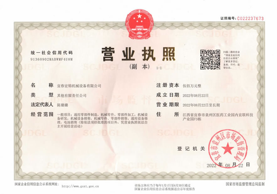 - 2024-06-07宜春宏錦機(jī)械設(shè)備有限公司公司動(dòng)態(tài)